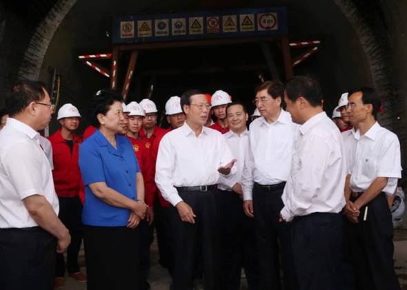 在京張鐵路八達(dá)嶺隧道2號(hào)斜井施工現(xiàn)場,張高麗首先觀看了中鐵咨詢制作的京張鐵路沙盤及動(dòng)畫演示,察看了隧道工程進(jìn)展情況,慰問了設(shè)計(jì)、施工、監(jiān)理等單位的參建員工,并在工地會(huì)議室主持召開座談會(huì),聽取京張鐵路等規(guī)劃建設(shè)進(jìn)展情況匯報(bào),對(duì)設(shè)計(jì)工作給予了充分肯定。