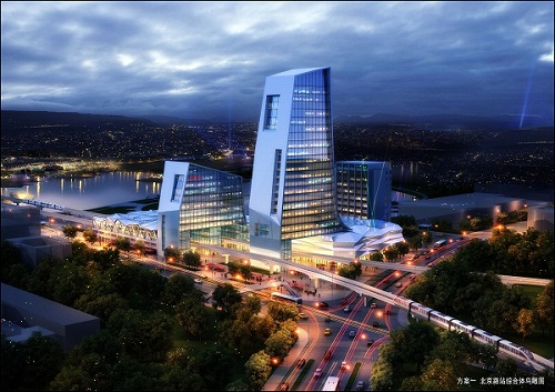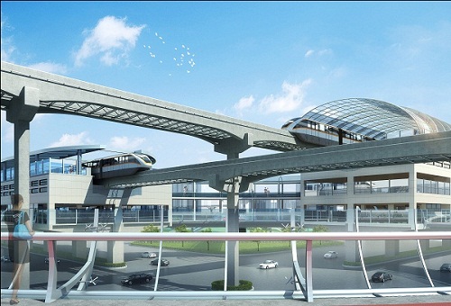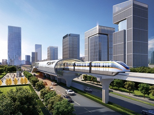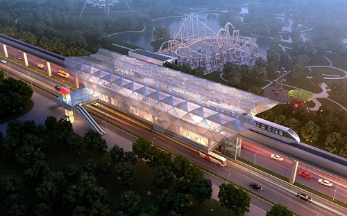 平行換乘、綜合體一體開發的輕型跨座式單軌交通效果圖