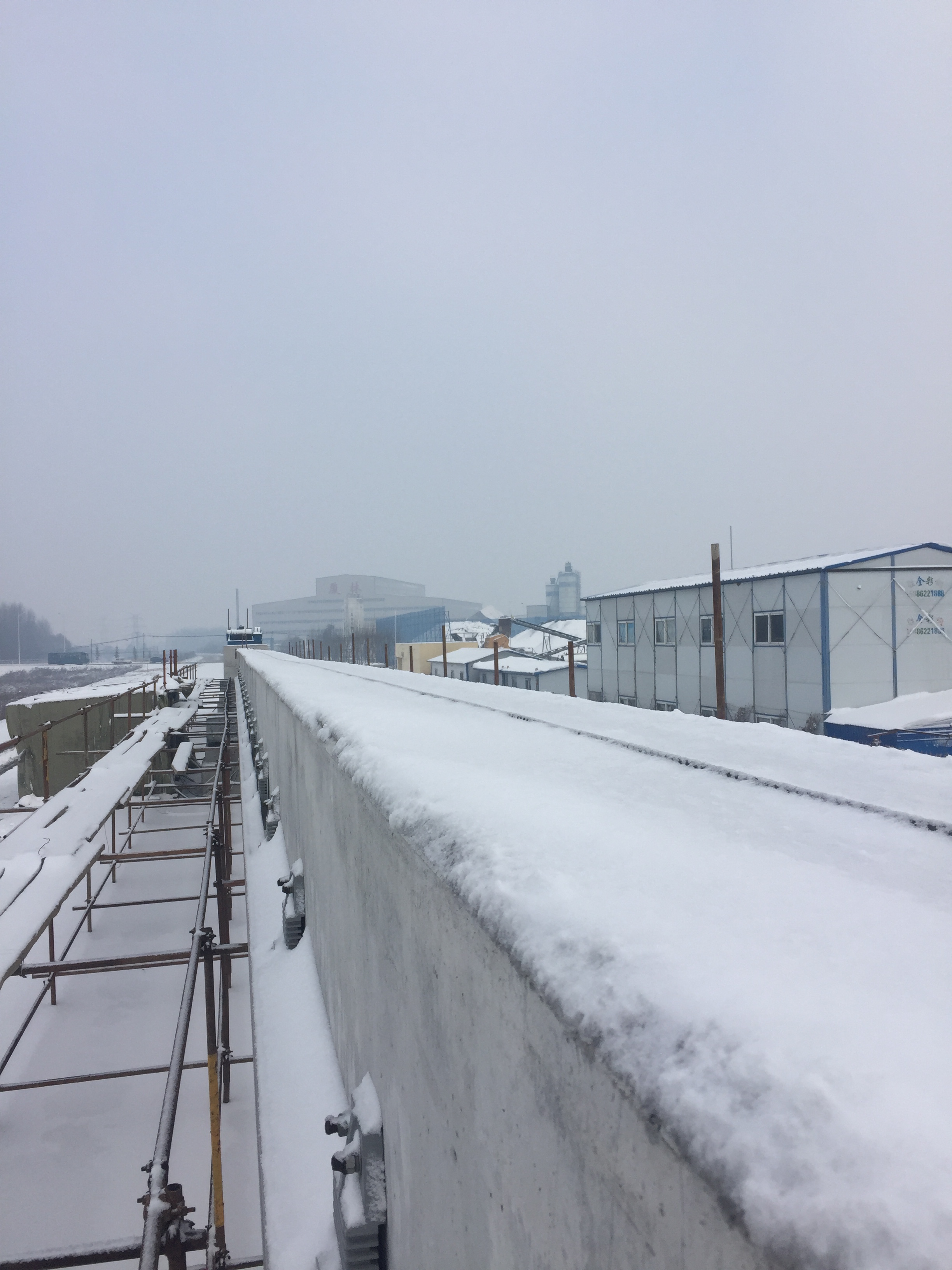 11月5日,吉林市迎來今冬的第一場中雪,試驗(yàn)梁面結(jié)冰嚴(yán)重,中鐵咨詢橋梁院單軌融冰雪項目組針對這一特殊工況成功地進(jìn)行了一次融冰雪試驗(yàn)。