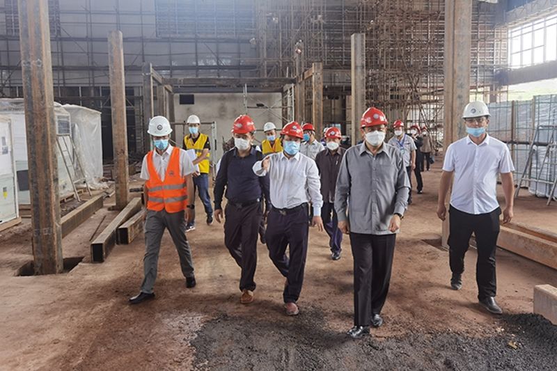 宋賽副總理一行先后實地考察了中鐵建工等位承建的磨丁、納堆、納磨、孟賽、孟阿、瑯勃拉邦6座車站,聽取了老中鐵路有限公司負責人關于中老鐵路站房整體建設情況和各站房現(xiàn)場進度的相關匯報,仔細察看了車站效果圖、室內外裝修效果圖,以及站前廣場和公寓樓,對在新冠肺炎疫情影響下站房建設取得的成果表示十分滿意。