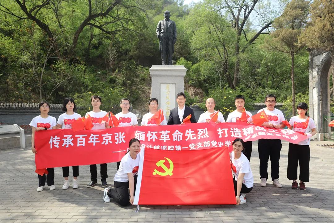 在詹天佑紀念館前,全體黨員干部凝視詹天佑雕像,重溫了入黨誓詞。我院王磊同志代表航遙院接過了平漯周新建鐵路項目的“青年突擊隊”旗幟,這面旗幟,代表的是光榮、責任與使命,需要全體航遙人團結一心、眾志成城,發揚孺子牛、拓荒牛以及老黃牛的“三牛”精神,不用揚鞭自奮蹄。