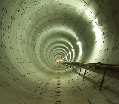 老街站~曬布站區間上下重疊段及過渡段長度約740m,上下洞間所夾地層為殘積層和全風化花崗片麻巖層,同時重疊段下穿了多幢房屋、東門老街繁華商業區,地面建筑物密集,道路地下管線密集。本區間采用了2臺海瑞克土壓平衡盾構機,采用了先下后上的施工順序,上下洞分別于2009年7月24日和2009年4月17日貫通。